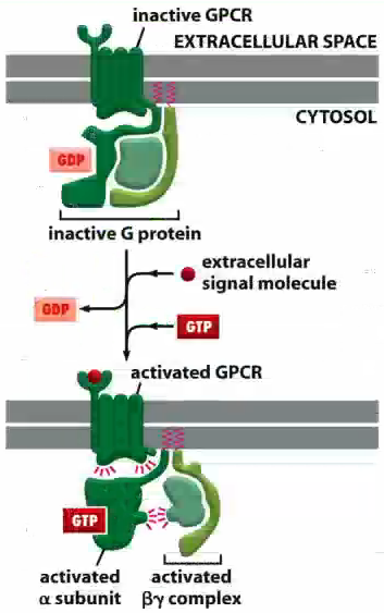 The GDP attached to the alpha subunit is exchanged for a GTP