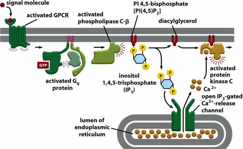 IP3 causes the ER to release Calcium ions by binding to Calcium Ion channels