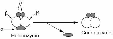 Made up of five subunits, sigma subunit can detach to create a four subunit core enzyme
