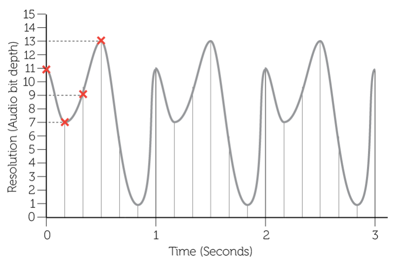 Sound is digitized by repeatedly measuring and recording the sound wave
