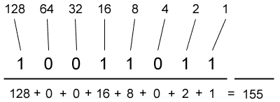 Each pixel is a single colour and is given a binary value which represents that colour e.g. 11000000 might equal Red