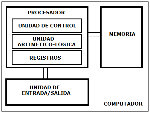 interior de la computadora (la caja negra) metica, unidad de control y entrada/salida.