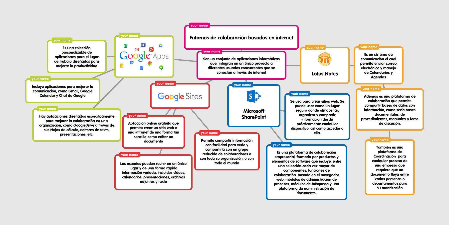 Mapa mental de herramientas de colaboración basados en internet