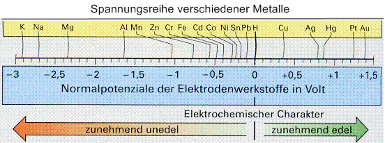Zink ist unedeler und löst sich bei Elektrochemischer reaktion auf