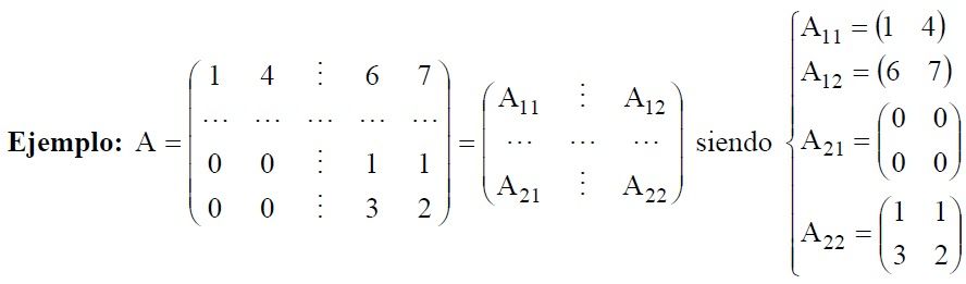 En algunas situaciones es necesario manejar las matrices como bloques de