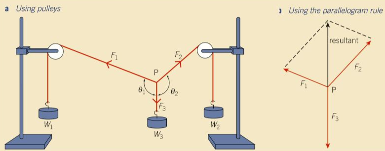 when three forces act on point object, to be in equilibrium, resultant components must be 0