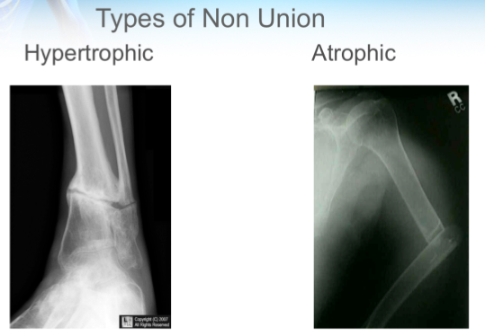 Hypertrophic non-union: florid periosteal new bone formation, wants to heal- biology of healing okay just needs stability