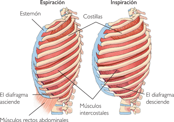 Musculatura encargada de la respiración: Diafragma y músculos intercostales