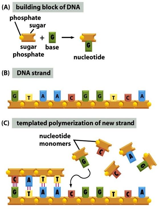 Nucleoside triphosphates are the substrates for DNA synthesis; pyrophosphate is released and the