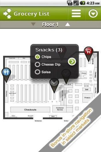 Many chains have introduced their own mobile apps with several useful shopping features. TheWegmans mobile app, for example, lets you scan a barcode on a product and automatically add it to your shopping list. It also features recipes and the ability to add the ingredients directly to your list. Weis Markets mobile app lets you view the weekly circular, and create and email a list to someone else. The Android version lets shoppers use their voice to add items to the list. With the new Harris Teeter mobile app, an enhanced store locator adds GPS technology and driving directions. Shoppers can also view their shopping lists offline and integrate them with their desktop shopping list. The application even provides text message notification and the ability to pre-order subs and sliced meats and cheeses in select stores.