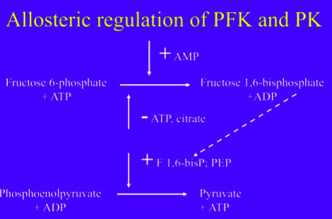PFK acts as a positive allosteric regulator of phosphenyolpyruvate to pyruvate (a later step in glycolysis); good example of co-ordinated regulation