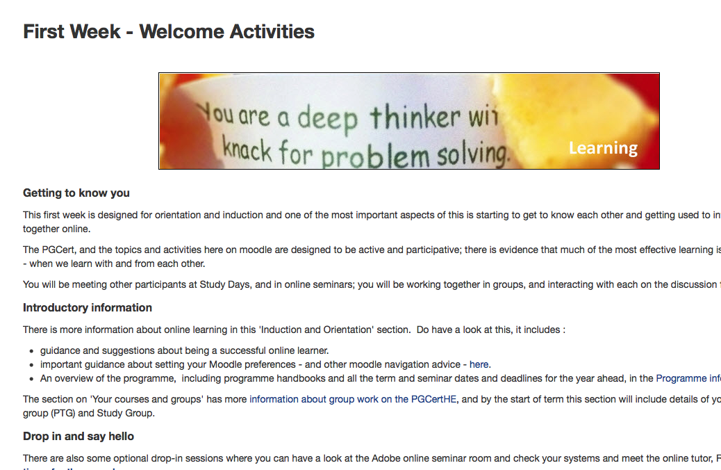 induction on the online/ blended PGCert HE programme- issues and strategies