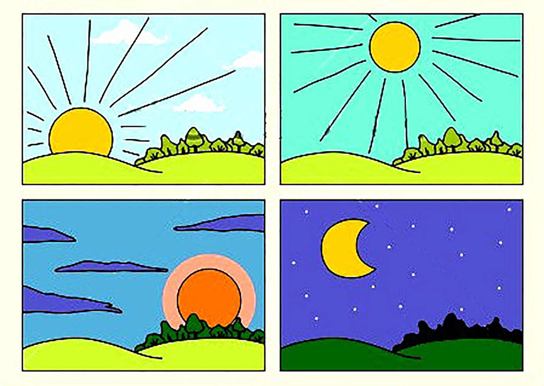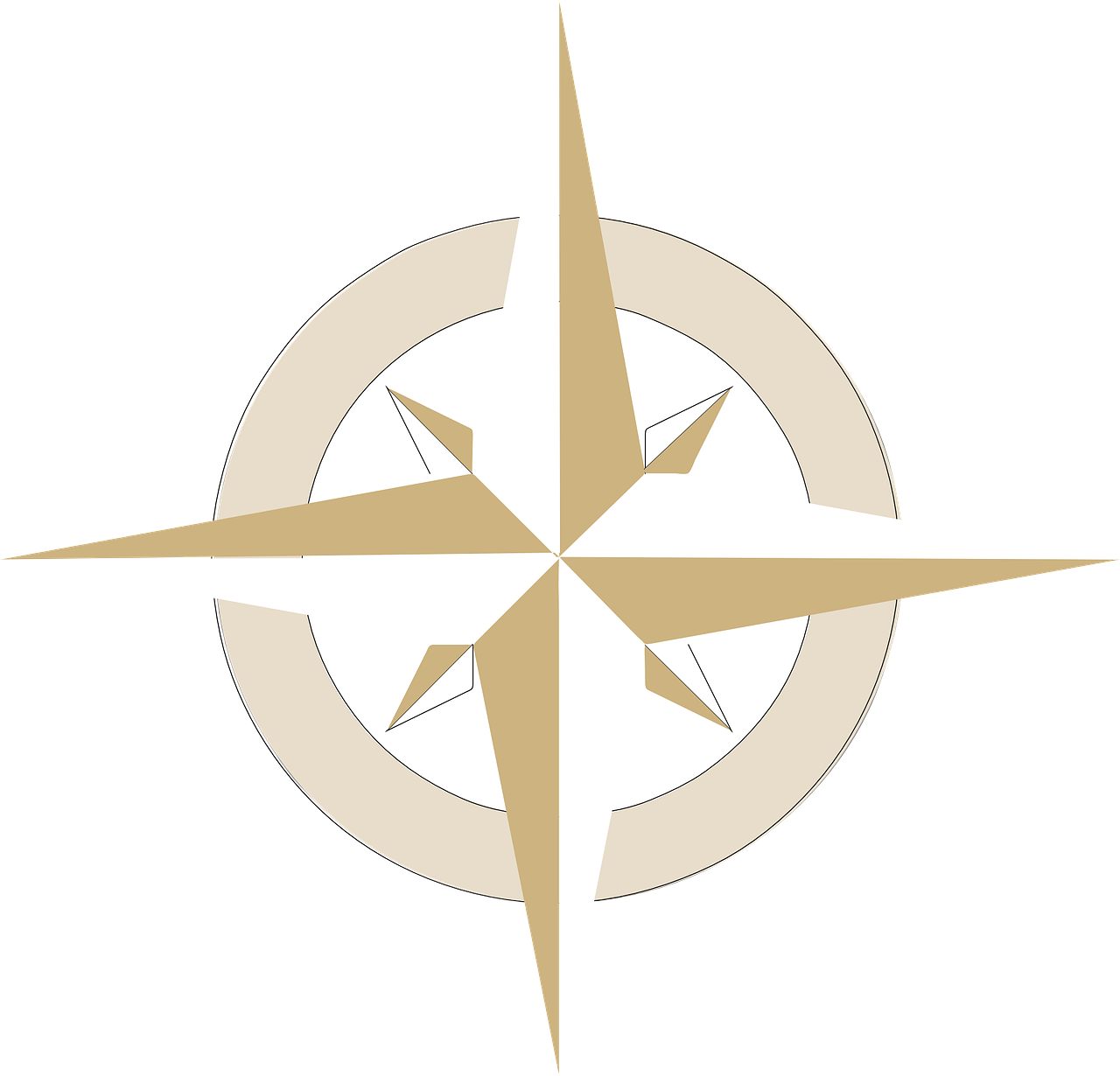 Norden, Osten, Süden und Westen.