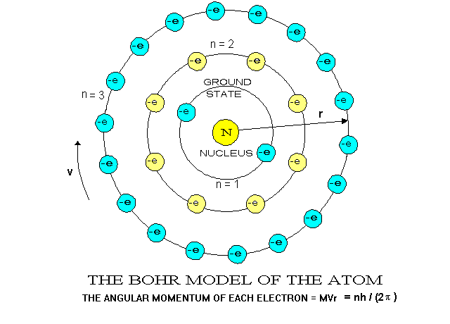 Bohr proposed that atom has energy levels as circular orbits. Electrons move as wave in a specific energy levels. Electrons can transfer to different energy levels when they lose or gain energy.