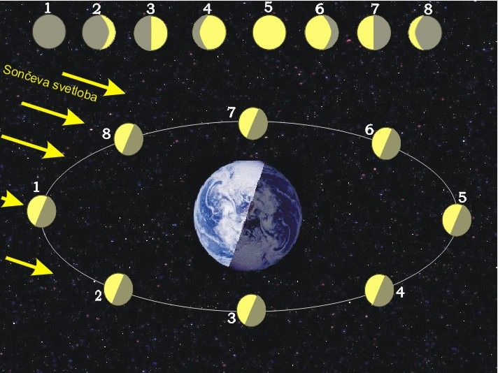 ponoči lahko vidimo samo tisti del lune ki je osvetljen