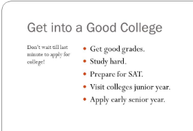 T: I must start getting good grades Freshman year all the way to senior year of college