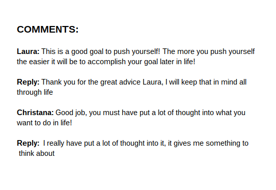 R: This is important to me because I want to know about how to work a business by myself so I can become an euntreprenuer in baking