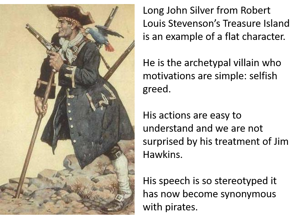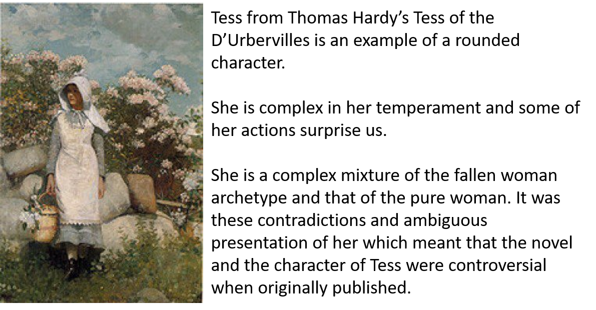 A mindmap showing teh difference between flat and rounded characters in relation to C19th prose fiction