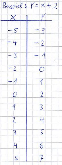 Wertetabelle in graphischer Darstellung: Werte als Punkte in ein Koordinatensystem einzeichnen und anschließend verbinden.