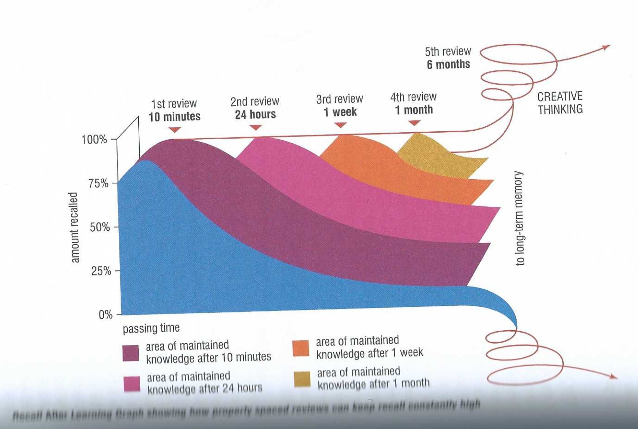 Using your memory's rhythms to help you learn and retain information, from The Memory Book by Tony Buzan, Chapter 2, Your Memory's Rhythms. In summary: short sessions; frequent quick reviews during and after learning. Can be applied to lessons, books, lectures, meetings, projects.