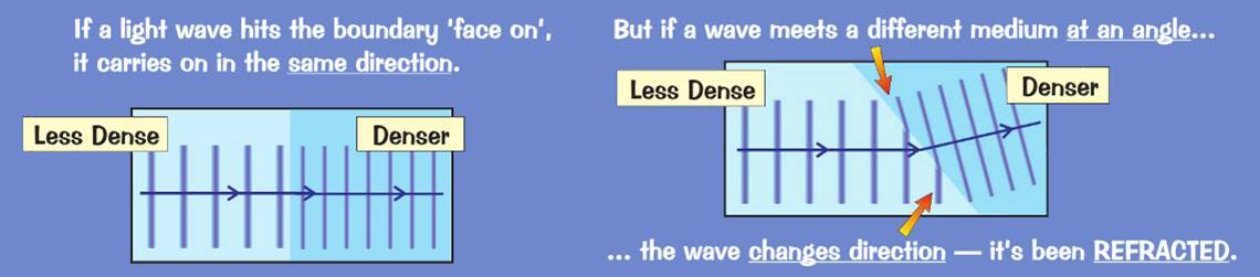 If they're travelling along the normal they will change speed, but are NOT refracted