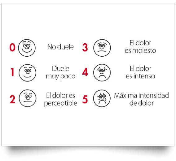 ausencia de dolor y la más triste representa el dolor máximo.