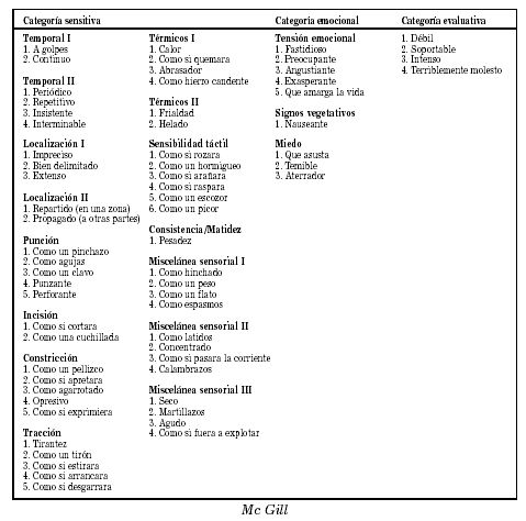 cuantificar la percepción subjetiva del dolor y