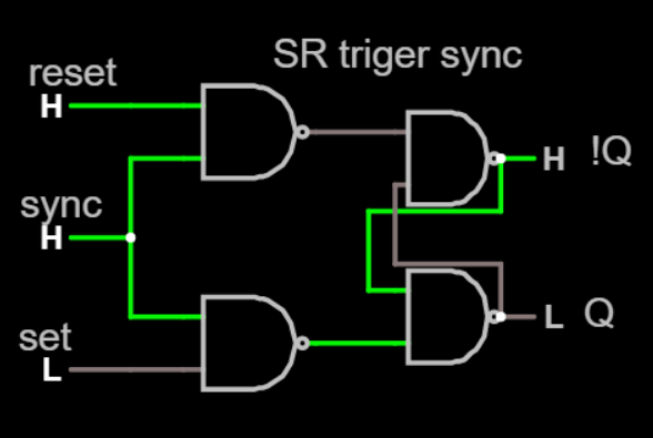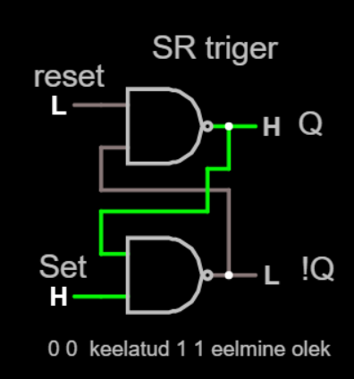 2 NANDi või 2 NORi. ei ole sünkrosisendit.