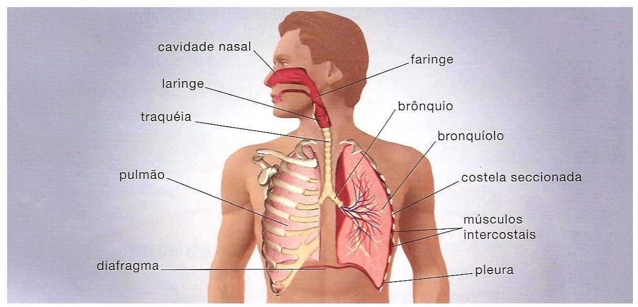 Ventilação pulmonar: depende da atuação dos músculos intercostais e do diafragma. Inspiração (entrada de ar/fase de enchimento dos pulmões). Contração dos músculos intercostais e do diafragma. Expiração (saída de ar/esvaziamento dos pulmões). Relaxamento dos músculos intercostais e do diafragma.