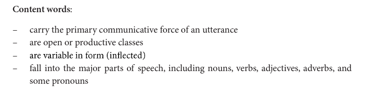 Content words= Lexical Morphemes