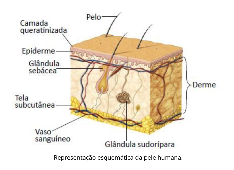 Na realidade a nossa pele tem duas camadas: Epiderme; e Derme. Abaixo da derme nós vamos encontrar a hiporderme (também conhecida como tecido/tela subcutâneo (a). Esta é sempre comentada quando o assunto e pele, porém não é uma camada da pele.