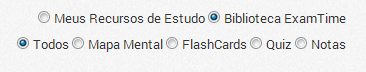 A pesquisa avançada permite que você faça filtros de acordo com o tipo de Recurso de Estudo e também que você faça uma busca na sua biblioteca ou na Biblioteca ExamTime