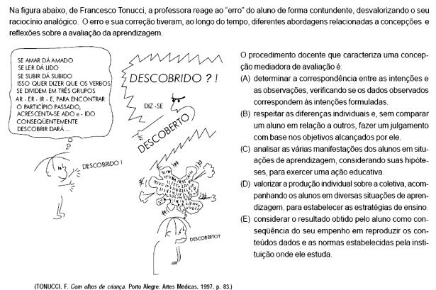 Particularmente, não consideramos as provas objetivas, de questões de preenchimento de lacunas como opção didática mais viável para a prática pedagógica universitária, por priorizar um enfoque factual dos conteúdos (conforme pontua Zabala, 1998).