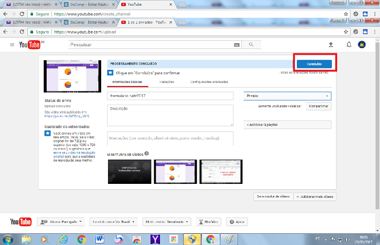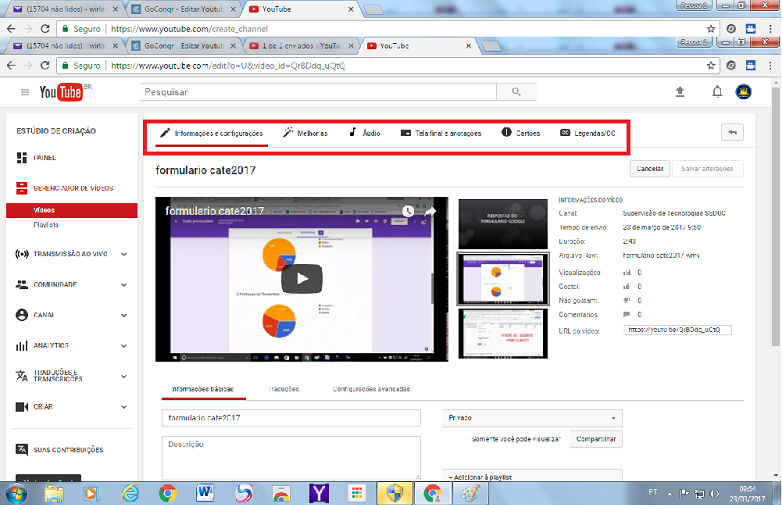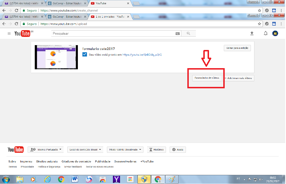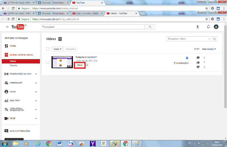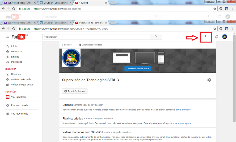 ATIVIDADE AVALIATIVA 1-Você estudou que o editor de vídeo online do YouTube permite juntar vários vídeos, fazer cortes, adicionar legendas e já publicar o conteúdo na web, sem complicação. Ele só não oferece recursos de efeitos especiais , mas já quebra o maior galho para uma edição rápida e fácil.Crie e edite um vídeo educativo utilizando o Youtube e disponibilize o link no ambiente e-Proinfo.ATIVIDADE OPCIONAL 1-Crie seu próprio canal Youtube e compartilhe com os demais colegas. Peça que se inscrevam no seu canal para terem acesso as atualizações que você postar.