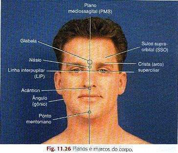 Certos marcos de superfície e linhas de localização têm que ser usados para um posicionamento preciso do crânio. Essas linhas são formadas pela conexão de certos marcos anteriores com o ponto médio do meato acústico (auditivo) externo (MAE). O MAE é a abertura do canal externo da orelha. O ponto central dessa abertura é denominado ponto auricular. Linha glabelomeatal (LGM); linha interpupilar (LIP) linha orbitomeatal (LOM); linha infra-orbitomeatal (LlOM), linha de base de Reid ou linha de base antropológica; linha acantomeatal (LAM); linha mentomeatal (LMM); linha labiomeatal (LLM); linha glabeloalveolar (LGA);