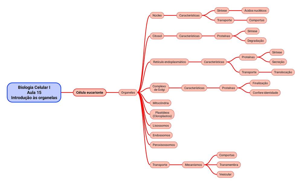 LICENCIATURA EM CIÊNCIAS BIOLÓGICAS – CEDERJ - UENF SEGUNDO PERÍODO DISCIPLINA: Biologia Celular 1 Aula 15: Introdução às organelas Organização geral das células eucariontes · Possuem dos compartimentos, o meio intracelular e o extracelular. Diferentes compartimentos, diferentes funções · Os principais compartimentos intracelulares de uma célula eucarionte são: · Núcleo, citosol, retículo endoplasmático (liso e rugoso), complexo de Golgi, mitocôndrias, plastídios (cloroplastos), lisossomos, endossomas e peroxissomas. · Os diversos compartimentos celulares enviam e recebem informações através das moléculas utilizando três mecanismos: 1. Transporte através de comportas. 2. Transporte transmembrana. 3. Transporte vesicular. · Principais características dos compartimentos celulares: Núcleo · Contém o genoma e é o local de síntese dos ácidos nucléicos (DNA e RNA). · Envoltório nuclear duplo com presença de poros, funcionando como comportas regulando a passagem de moléculas para dentro e para fora. · Tipo de transporte: através de comportas. Citoplasma · Maior compartimento celular. · Ocorre a síntese e degradação de proteínas. Retículo endoplasmático · Possui a maior parte de membranas da célula. · Síntese e secreção de proteínas. · Síntese de lipídeos (retículo liso) · Ancoragem de ribossomos (retículo rugoso) · Tipo de transporte: proteínas translocadoras. Complexo de Golgi · Finalização das proteínas com incorporação de resíduos de açúcar às cadeias proteicas, conferindo identidade as mesmas. · Ao saírem desta organela, se fundem nas membranas das organelas as quais se destinam. · A sequência sinal, garante o correto direcionamento das inúmeras proteínas sintetizadas pela célula.