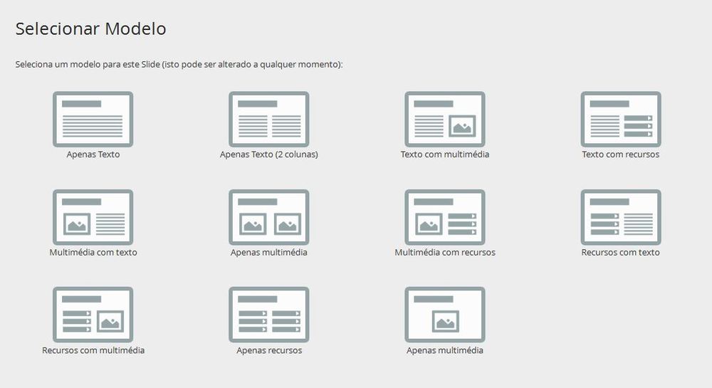 Para inserir um novo slide basta clicar novamente no SINAL DE + que está na parte superior esquerda da tela e escolher um novo LAYOUT. Os layouts precisam ser previamente estruturados para que haja harmonia em sua apresentação e entendimento por parte do aluno. Pouco texto, muitas imagens e vídeos que ilustrem o assuntos.