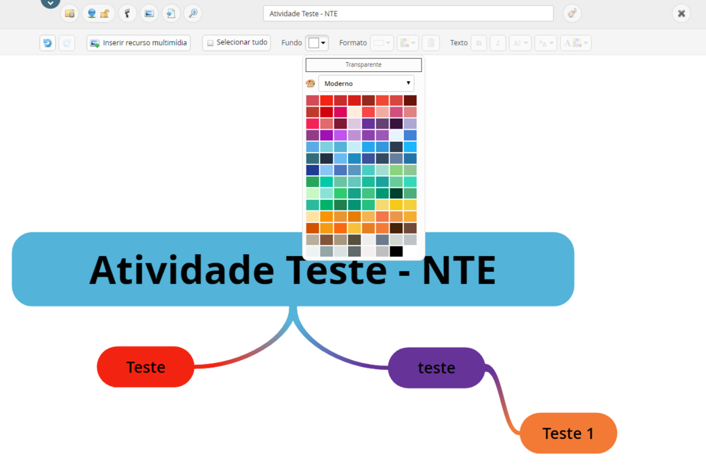 PASSOS PARA CRIAR UM MAPA MENTAL:Clique em CRIAR / MAPA MENTAL e observe que a primeira tela que irá aparecer será a que você ver na imagem abaixo.