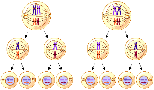 Meiosis produces genetic variation through: 1. Segregation 2. Independent Assortment 3. Crossing over (recombination) All 3 randomly shuffle the alleles of the chromosomes in a parent cell into four different gamete cells -> meiosis produces different combinations of alleles = why children don’t look exactly like half the characteristics of each parents why siblings don’t look alike. Segregation – the two alleles of a pair of homologous chromosomes separate into different cells during meiosis. · In the first division, Meiosis I, chromosomes line up in homologous pairs at the cwell equator (with each member of a homologous pair opposite the other on either side of the equator) · Therefore, when each member of the homologous pair is pulled to opposite poles by spindle fibres the two alleles for a gene are separated into different cells. So, segregation means: · You can end up with gametes with different alleles for a gene · Either one of the alleles can then be passed on into the gene pool through a gamete · This gives the opportunity for there to be different combinations of alleles from the parent when it fuses with another gamete to form a zygote (thereby increasing genetic variation from the parent) Independent Assortment · During Meiosis I, each homologous chromosome pair lines up and separates independently of how the other pairs line up. · Each time a cell divides, the orientation of each pair will be different, producing different allele combinations each time. It shuffles alleles into a huge variety of new combinations. Crossing Over - an exchange of sections of non sister chromatids between homologous chromosomes (shuffles alleles between homologous chromosomes When the homologous chromosomes pair up and form tetrads, sections of the non sister chromatids can cross over at a point called a chiasma A chiasma is the point where the two non sister chromatids cross over and exchange genetic material The crossed sections can break and recombine at the chiasma resulting in chromosomes in the gametes with different allele combinations from those of the parent, therefore increasing genetic variation.