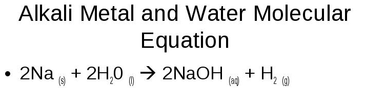 When lithium, sodium and potassium are put in water they react very vigorously. They move around the surface, fizzing furiously and produce hydrogen.The reactivity with water increases down the group - the reaction with potassium gets hot enough to ignite it. Sodium and potassium melt in the heat of the reaction. An alkali forms which is the hydroxide of the metal.