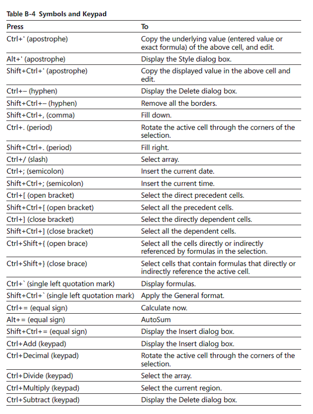 Excel Shortcuts by Task