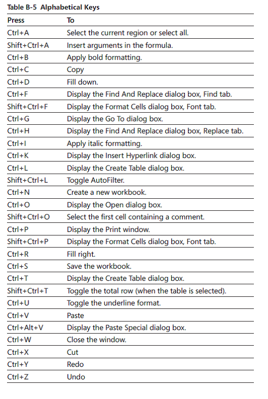Excel Shortcuts by Task
