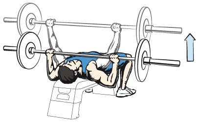 Emphasise your... chest Take as wide a grip as possible. The further away from each other your hands, the more your arms are forced to move toward the centre of the body as the barbell is lowered, placing greater strain on your chest.