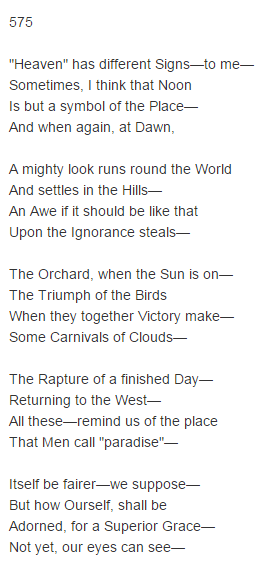 Description of the natural signs that Dickinson perceives to represent heaven.
