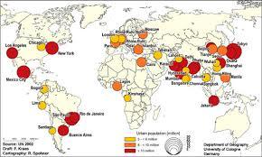 World Cities: Global reach - they have become the command and control centres of the international economy Dominate the global urban hierarchy Mainly located in the developed world The three top ranking world cities are New York, London and Tokyo Typically, world cities are leading business centres and the preferred headquarter locations of leading TNCs Global service centres, specialising in advanced producer services such as finance, banking, accounting, law and advertising Major telecom, information and transport hubs Magnets for highly educated, skills workers, and are often home to world class universities Political and cultural impacts; hosting international sporting events, and supporting a wide range of performing arts venues as well as renowned museums and galleries Mega Cities:- Regional or national influence- Total population in excess of 10million people- Distinguished from global cities by their rapid growth, new forms of spatial density of population, formal and informal economies, as well as poverty, crime and high levels of social fragmentation- 2011 = 21 mega cities in existence - such as Mumbai and Mexico CityMillionaire Cities:- A city with over a million inhabitants - Generally found in MEDCS, such as London (7,753,600) and New York (8,363,710)- With the increase in globalisation they have also spread in to LEDCs, often at major trading ports, or areas that are become economic hubs - such as Mumbai and Shanghai