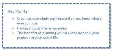 Another crucial aspect of your study journey is planning. Creating a study plan and sticking to it is the No. 1 tip for successful exam results. Unlike your S.M.A.R.T. plans your study planner or timetable should be more specific and detail what you will do on a daily basis, topic by topic, subject by subject. When you’re creating your timetable though, make sure you include free time for relaxation and your social life. You should also keep it somewhat flexible to ensure that if, for example, you miss a day because you’re sick you can make it up at a later date.The benefits of creating a study planner are numerous: Your study immediately becomes more productive as you know exactly what you should be doing, when you should be doing it and how long it will take you. You will get a better return on investment than if you simply opened a book and started to study a topic. You become more productive and your study is of a higher quality- it’s a win-win. There are also numerous psychological benefits of implementing your timetable before you start your arduous journey: You don’t panic, waking up in the middle of the night with the dreaded exam fear, because you feel on top of things. You know what you’ve done and what you need to do and, importantly, you know when you need to have it done by. So long as you stick to your timetable you can sleep easy This ease of mind means you become more confident in how you approach your study. You won’t feel guilty about spending time with friends or watching TV as you know that you covered you’re allotted study requirements. A side note, some people find a study planner too restrictive and as such abandon the whole concept all together. You shouldn’t do this; if you don’t like timetables give yourself a number of hours for each day. If you study more one day you can take it away from another day and vice versa if you want to finish early one day you can make it up the next. Such an approach could be very beneficial for some types of studiers. What’s important though is that you have some kind of plan in place. Another useful tip is to use exams as stepping stones. This is especially prevalent for mid-term exams. You should use these exams as a barometer of the progress you are making. You shouldn’t be discouraged if that C isn’t yet a B but you should at least be maintaining and hopefully progressing. If this isn’t the case you need to re-evaluate your study patterns. Getting organised is the final step before you actually put your foot out the door and take to the road. If you have followed the first two steps you will be well on your way to exam success and reaching your destination.