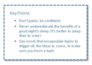 If you do find you are stressed or are panicking take a few deep breaths to calm yourself down. You should rest easy in the knowledge that you have prepared yourself, step by step, for this, the final stop, on your journey to exam success.