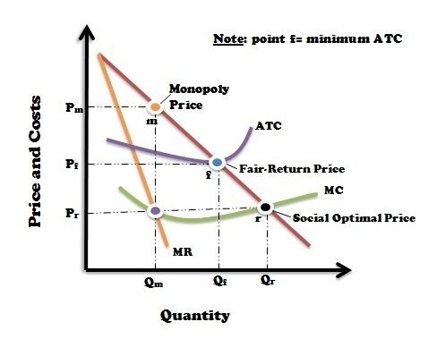 Because of inefficiency, the government may regulate monopolies by forcing them to produce more and charge less. Social Optimum: P = MC Fair Return: P = ATC (zero economic profit)