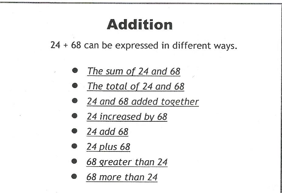 Maths Learning (Numbers) Note on Ways to say addition, created by simon.shah on 05/10/2013.