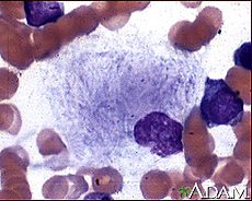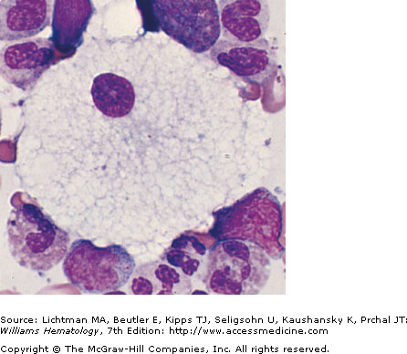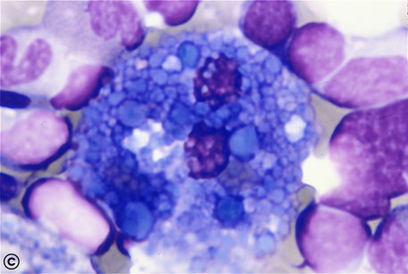 Sea Blue Histocyte -histocyte filled w globules of ceroid, an insoluble lipid pigment representing undigested globosides from cell membrane